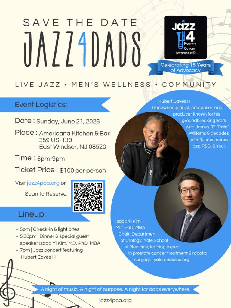 The mission of Jazz4PCA is to advocate for men’s wellness by supplying accurate information about prostate cancer, providing access to free or low-cost screenings while increasing exposure to live jazz music.